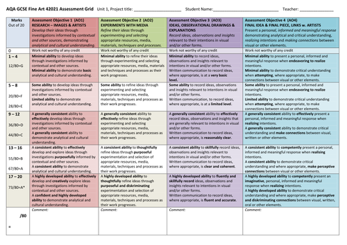 GCSE Assessment Grid for AQA Art Design Fine Art by Sumber : www.tes.com